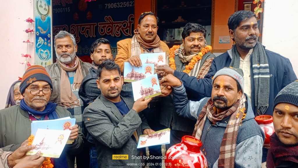 बुधवार को कस्बे के मोहल्ला बाजार,मोहल्ला जाटव पूरा,गांधीनगर तथा शिव मंदिर समेत नगर में स्वयंसेवकों ने ढोल नगाड़ों के साथ पूजित अक्षतों का वितरण किया। स्वयंसेवकों ने उत्साह के साथ अक्षत वितरण करते हुए श्रीराम भक्तों से 22 जनवरी को अपने- अपने घरों में दीपक जलाने और सजावट करने का आग्रह किया।