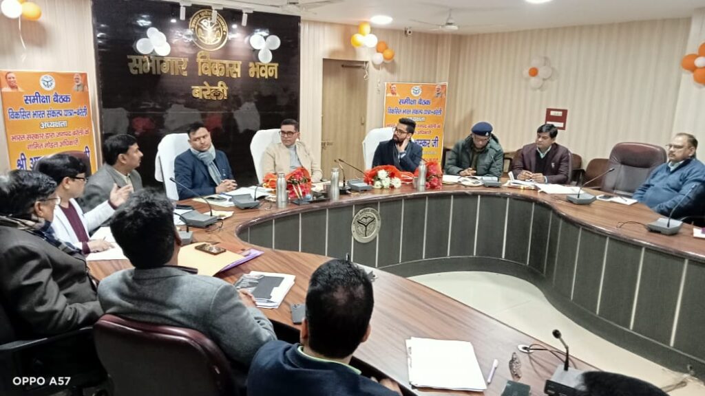 बरेली। भारत सरकार द्वारा विकसित भारत संकल्प यात्रा हेतु जनपद बरेली के लिये नामित नोडल अधिकारी आनन्द भास्कर की अध्यक्षता में आज संचालित ‘विकसित भारत संकल्प यात्रा’ के संबंध में बैठक विकास भवन सभागार में आयोजित हुई।