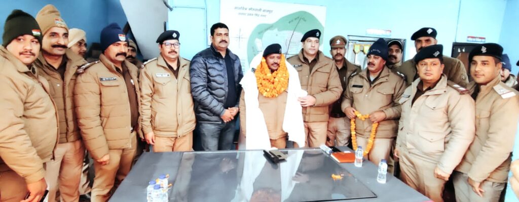 बाजपुर। कोतवाली में क्षेत्राधिकारी बीएस भंडारी के स्थानांतरण पर जाने के उपलक्ष में विदाई समारोह में एसपी अभय सिंह कोतवाल नरेश चौहान सहित सीओ कार्यालय स्टाफ एवं कोतवाली स्टाफ द्वारा फूल मलाये पहनकर एवं सोल ओड़ाकर उनको सम्मानित किया गया।