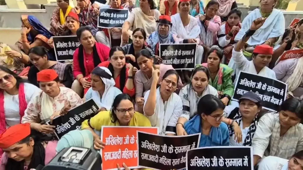 विवाद की शुरुआत और सपा का विरोध यह विवाद तब शुरू हुआ जब रेखा गुप्ता ने एक टीवी इंटरव्यू में अखिलेश यादव के खिलाफ आपत्तिजनक टिप्पणी की थी। इसके बाद सपा की महिला विंग और अन्य कार्यकर्ताओं ने लखनऊ, वाराणसी, अलीगढ़, और फरीदपुर सहित कई शहरों में विरोध प्रदर्शन किए। लखनऊ के हजरतगंज में सपा की महिला सभा ने गांधी प्रतिमा पर काली पट्टियां बांधकर प्रदर्शन किया, जिसमें राष्ट्रीय अध्यक्ष जूही सिंह ने रेखा गुप्ता से माफी या इस्तीफे की मांग की थी। प्रदर्शन के दौरान कुछ कार्यकर्ताओं पर ट्रैफिक बाधित करने और राजभवन का सुरक्षा घेरा तोड़ने का आरोप लगा, जिसके बाद उनके खिलाफ FIR भी दर्ज की गई।